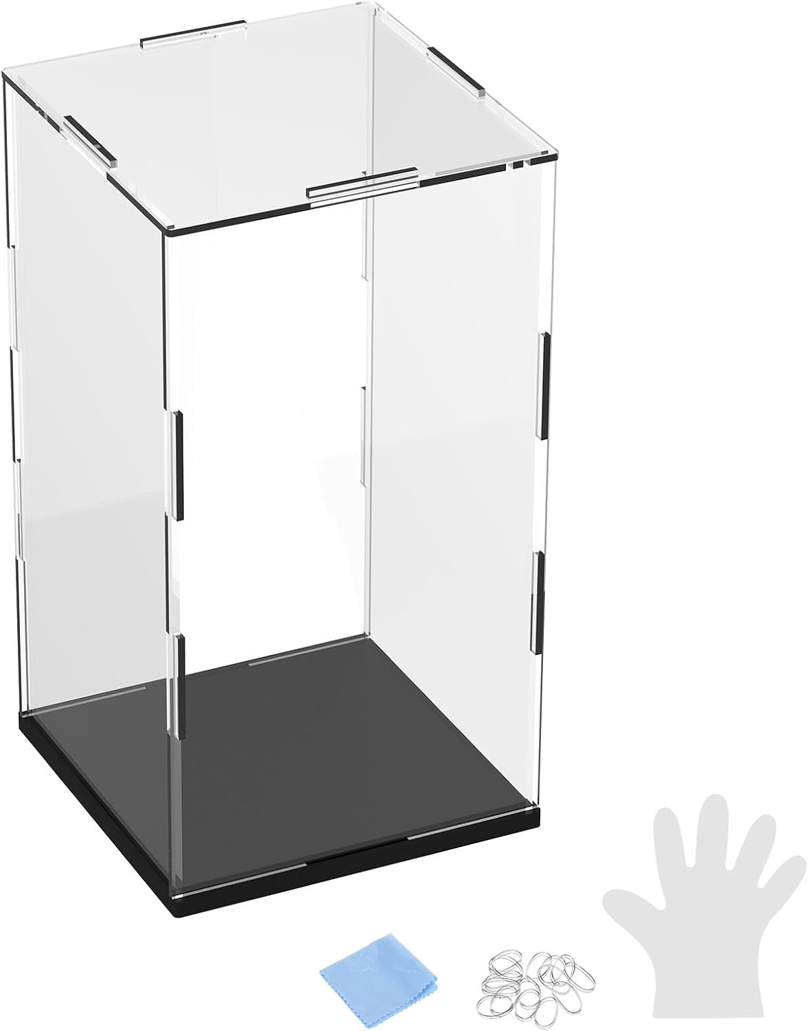 PRODUCT APPLICATIONSThis acrylic display box case is good for showcasing collectibles, such as figures, sculptures, shoes, or small souvenirs, widely used in home decor, retail displays, and museum exhibitions.PRODUCT DETAILS & INCLUDE√ Material: Acrylic√ Color: Black, Clear√ Size: 10 x 10 x 10cm / 3.9 x 3.9 x 3.9"(LxWxH)√ Acrylic Thickness: 2mm / 0.08"√ Base Thickness: 5mm / 0.2"√ Package Includes: 1Pcs x Acrylic Display CasePRODUCT ADVANTAGES1. Crafted from scratch-resistant acrylic, this display case offers clear visibility while protecting your valuables from dust.2. The acrylic display box with a wooden base, 2mm thickness board is sturdy and stable, the top cover of the product adopts spliced and movable design, which is easy to disassemble and store, enhancing the overall display effect of the collection.INSTALLATIONCard slot assembly, tear off the protective film of the acrylic plate before use. Assemble from the black bottom, easy to assemble without any tools.
