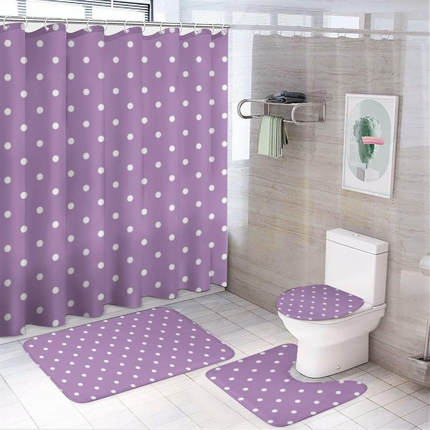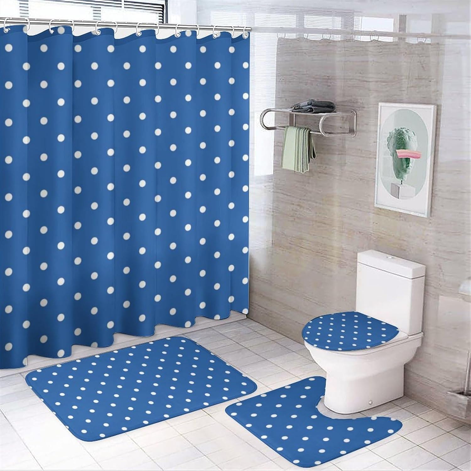 Why Choose Us: Adopt HD digital printing, clear vibrant design will bright up your bathroom! high quality flannel, used in the bathroom, it can be very effective and non-slip, helping you to enjoy a pleasant bath time. Neat wiring, excellent sewing, adopts durable and lightweight polyester fabric, can keep the air flowing effectively and also opaque to keep privacy without strange smell. We provide 12 hooks to our customer, ensure everyone can easy to install this shower curtain. Standard Size: Shower Curtain: 183 x 183cm/72 x 72inch Bathroom mat: 74 x 44.5cm/29.1 x 17.5inch O shape toilet lid cover: 44 x 35.5cm/17.3 x 14inch U shape rug: 45x 34cm/17.7 x 13.4inch Package Included: 1 × Shower Curtain 12 × Plastic C Ring 1× Bathroom Mat 1 × Toilet Lid Cover 1 × U Shape Rug Warm Notice: 1.Color difference is allowed because the light and screen effects. 2.There may be a difference in product size for manual.
