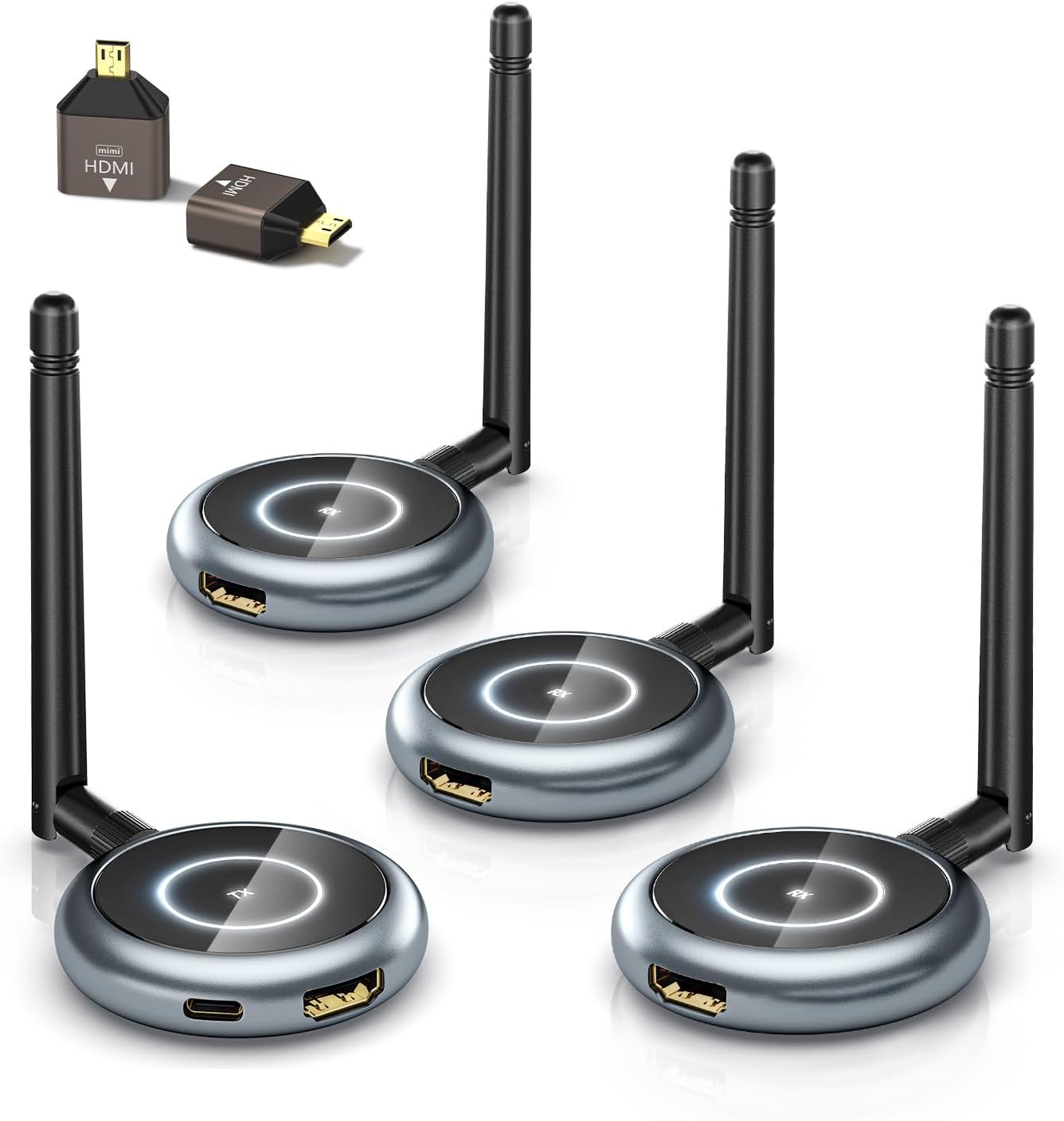 | Other Special Features of the Product | 1 transmitter can pair with 8 receivers;, 2.4G/5Ghz dual band, 0.1s low latency;, App function turns phone/tablet as a display;, Plug and play, instant cast to 4 TVs; 4K & 1080P@60Hz high-definition, Transmission range up to 165 feet with no barriers; |