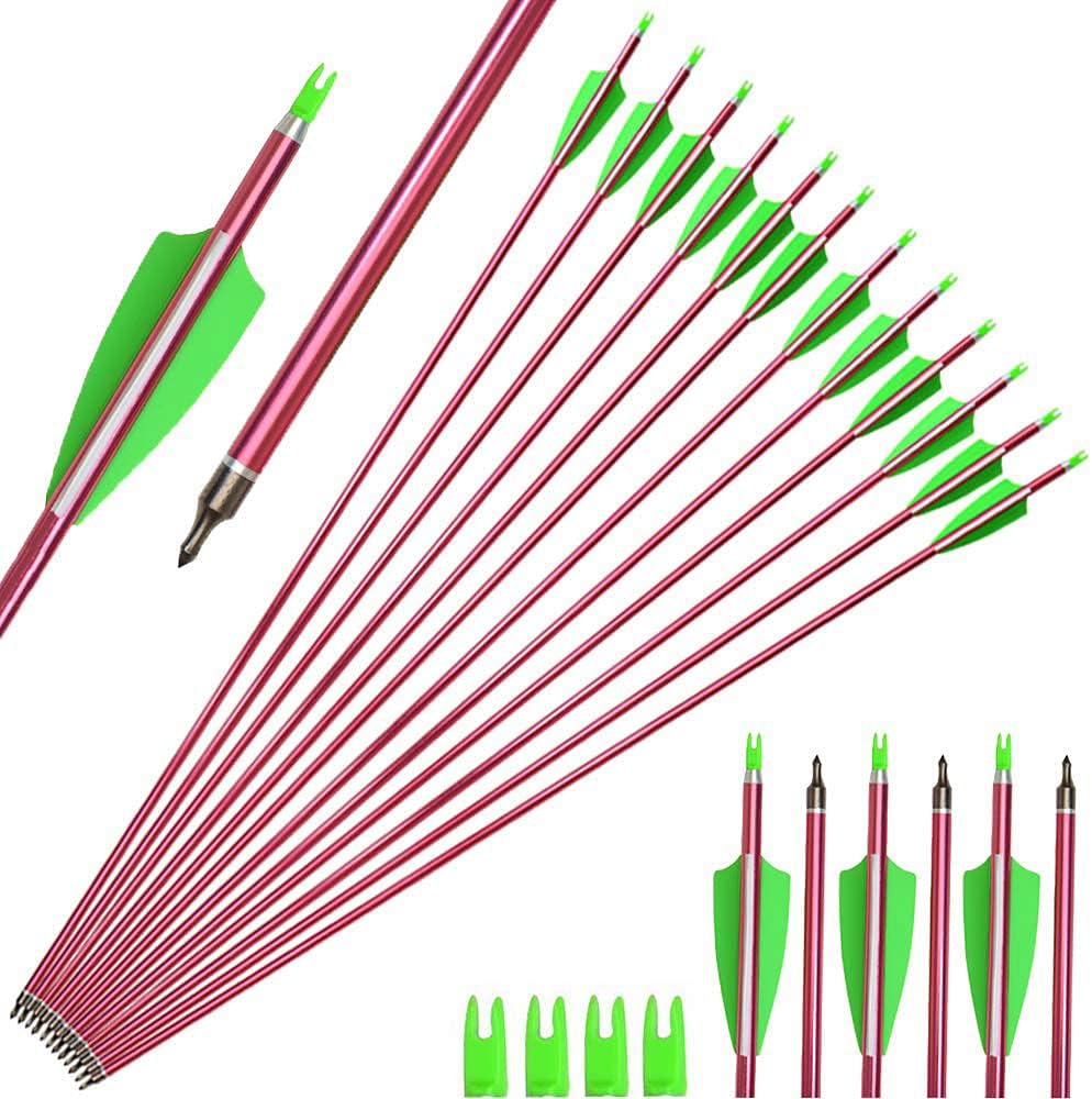 Aluminum Arrow Introduction The shaft is made of aviation aluminum alloy 7075. The shaft is shaped by drawing and heat treatment. The yield strength of 7075 is 900,000 psi, In hardness and elongation, aviation aluminum alloy 7075 is slightly better than carbon fiber. And the internal stress distribution on the shaft surface is uniform. In terms of spine/strength, straightness, and weight, consistency is consistently higher than carbon arrow. In terms of damage resistance, the 7075 aluminum arrow does not bend or damage easily when hit on wood of average strength. Product Details: Arrow shaft material: aviation aluminum alloy 7075-T6. Arrow shaft length:78cm/30inch Spine: 500 OD: 7.6 mm ID:6.5mm Weight: 33.3g/pc Suitable for: Compound & Recurve Bow package contents: 6/12pcs arrows