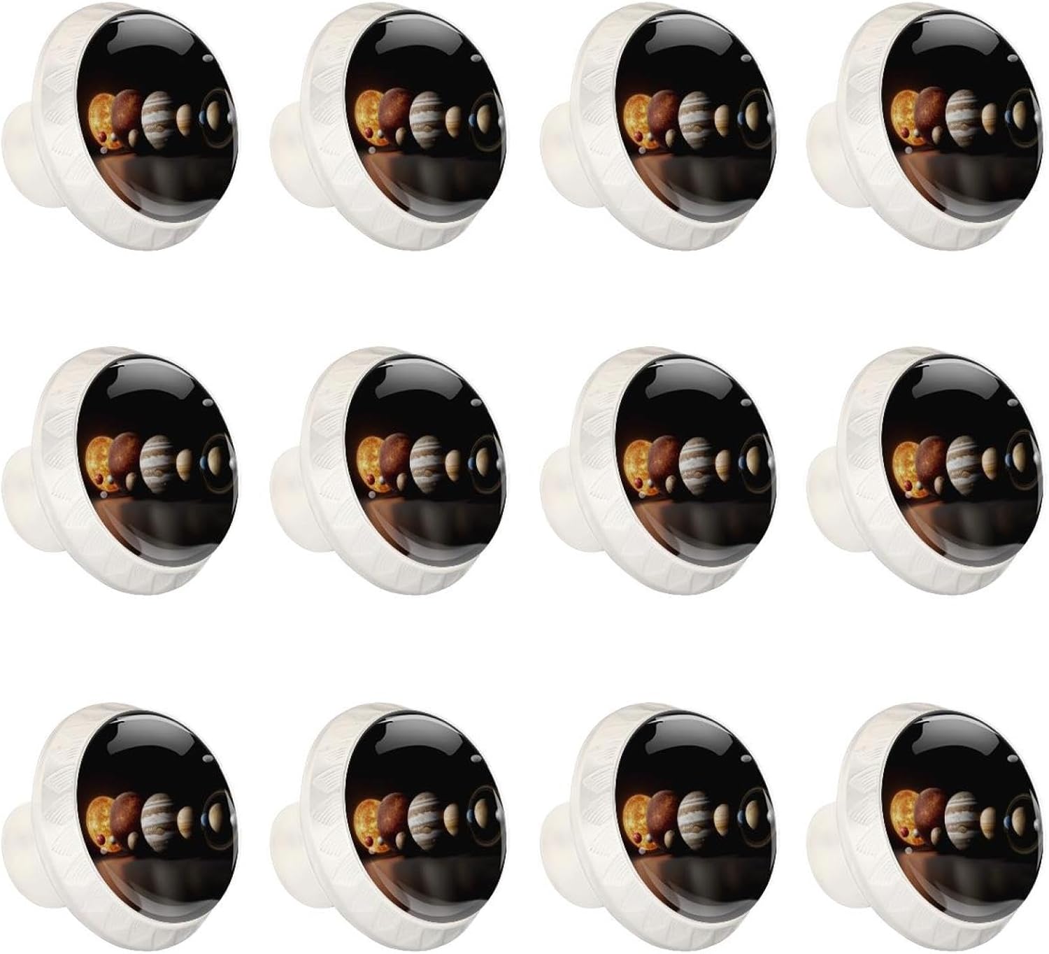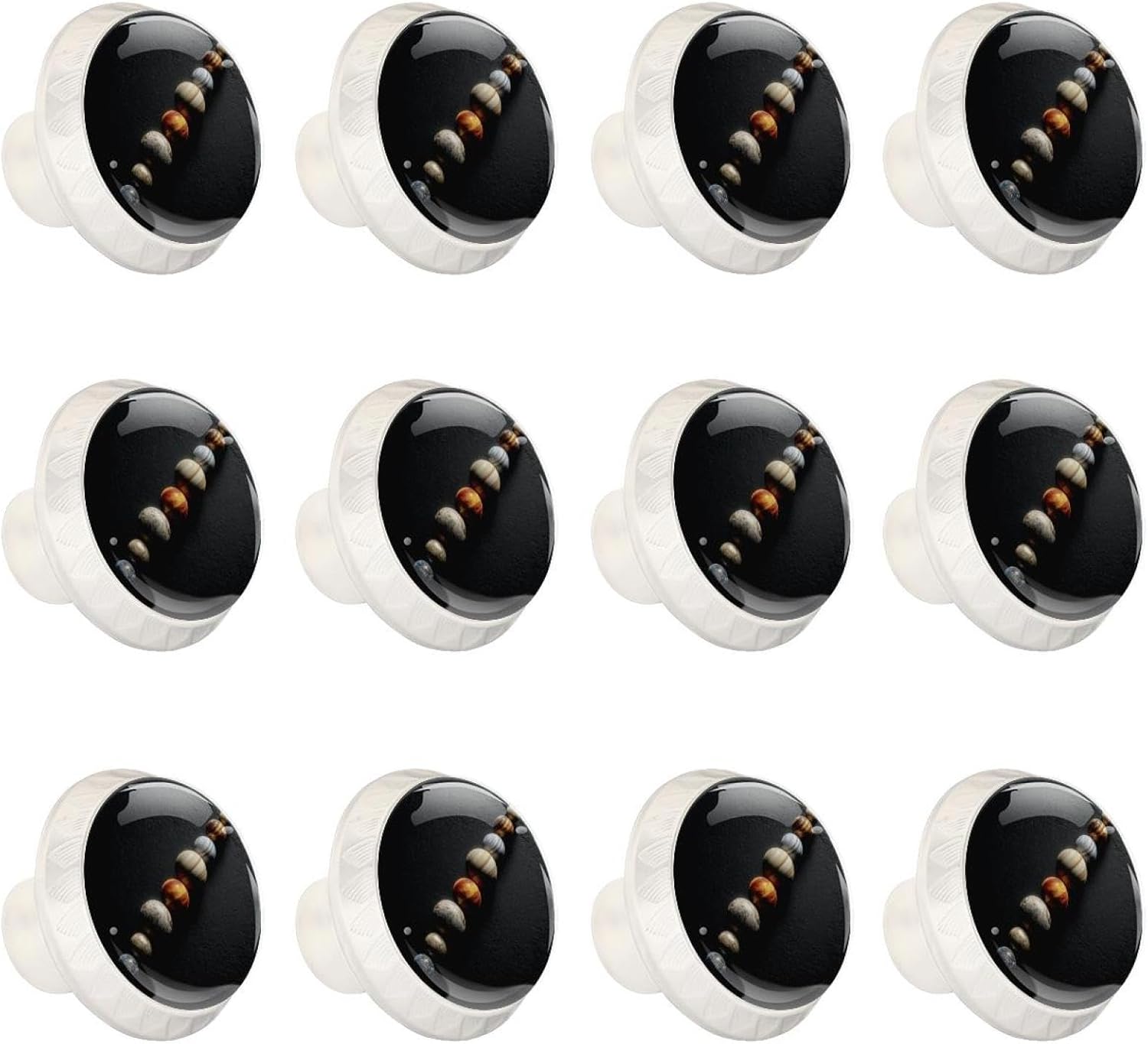 Upgrade your home decor with LORVIES Decorative Cabinet Knobs, Drawer Knobs, Cabinet Pulls & Drawer Pulls.Make them part of your home decor!These cabinet hardware & furniture knobs are the perfect size for your cabinets and drawers.The elegant and unique design, featuring diverse decorative patterns, adds a touch of sophistication to your cabinets.Not only are these kitchen cabinet knobs & bathroom drawer knobs functional, but they also elevate the style of any space.Whether it's your living room, kitchen, bedroom, or bathroom, these dresser knobs, wardrobe knobs & cupboard knobs are versatile and complement various decor styles. Product Information Material: ABS, Glass, Stainless Steel, Paper Size: 1.37" (Length) x 0.66" (Width) x 1.1" (Height) Weight: 0.28 Pounds / 0.13KG Base Color: Black Shape: Round with pattern edge Package Include: 12 x Cabinet knobs, 24 x Screws (Short x 12: 1.1" & Long x 12: 1.37") Notice ! ! ! Please measure and confirm the size of cabinet knobs & drawer knobs you need before purchasing. Please be careful when drilling holes. Manual measurements may be slightly inaccurate. Because of each computer display different colors may be related to physical and picture, hope to understand. LORVIES Service Provide you with a worry-free shopping, thank you! Any problems, please feel free to find up to us, we will try our best to help you solve your problems. Customer service time: Monday to Friday (9.00am-6:00pm) (GMT+8)(Due to the time difference, please allow us 24 business hours to get back to you. Thank you!)