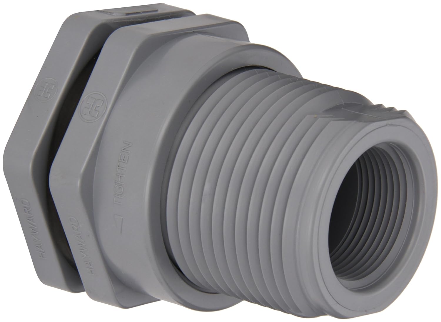 ' Bulkhead Fitting, Class 150, Connection Size 1 1/2 In, Tube Outside Dia 2.65 In, Socket x FNPT Connection, Material of Construction PVC, Max Pressure 150 PSI, Temp Range 40 To 140 Deg F, Color Gray '