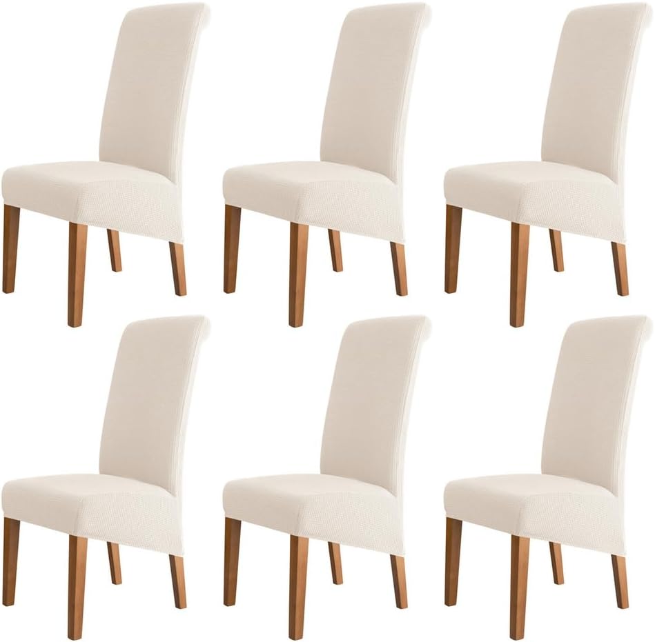 High back dining chair covers dining room, hotel, kitchen, restaurant, wedding banquet, dinner, meeting, celebration, dinner, ceremony, home decoration, etc.Soft & Comfortable: The stretch dining chair slipcovers are made of durable polyester fabric, soft and comfortable.Stretchable & Non-Slip: Convenient to install with sewn-in elastic band and give a snug fit on the chair that goes on easily and stays in place.Perfect Fit: Designed with High elasticity to perfectly fits most armless dining chair.Protect our dining chairs from stains, spills, wear and scratch.Easy Care: The stretch chair cover is hand or machine washable. Wash separately in cold water, at gentle cycle. Using mild laundry detergent. Do not bleach and iron.CHAIR COVER SIZEBack height: 60-75 cmBack width: 35-48 cmSeat width: 38-48 cmSeat depth: 38-48 cmSeat thickness: 4-14 cmPlease check the size of your chair before orderingName: High back Kitchen Dining Chair CoversMaterial: polyester + spandexColor: Beige, dark brown, khaki, light brown, red, light gray, dark gray, black, blue, green, white, pinkWeight: about 150g (1 piece)Package includes: 2/4/6 x chair cover (excluding chairs)Please Attention- Due to different light and screen, the color of the item may be slightly different from the image.- Due to manual measurement, please leave a distance of 1-3 cm. Please understand us, thank you very much.