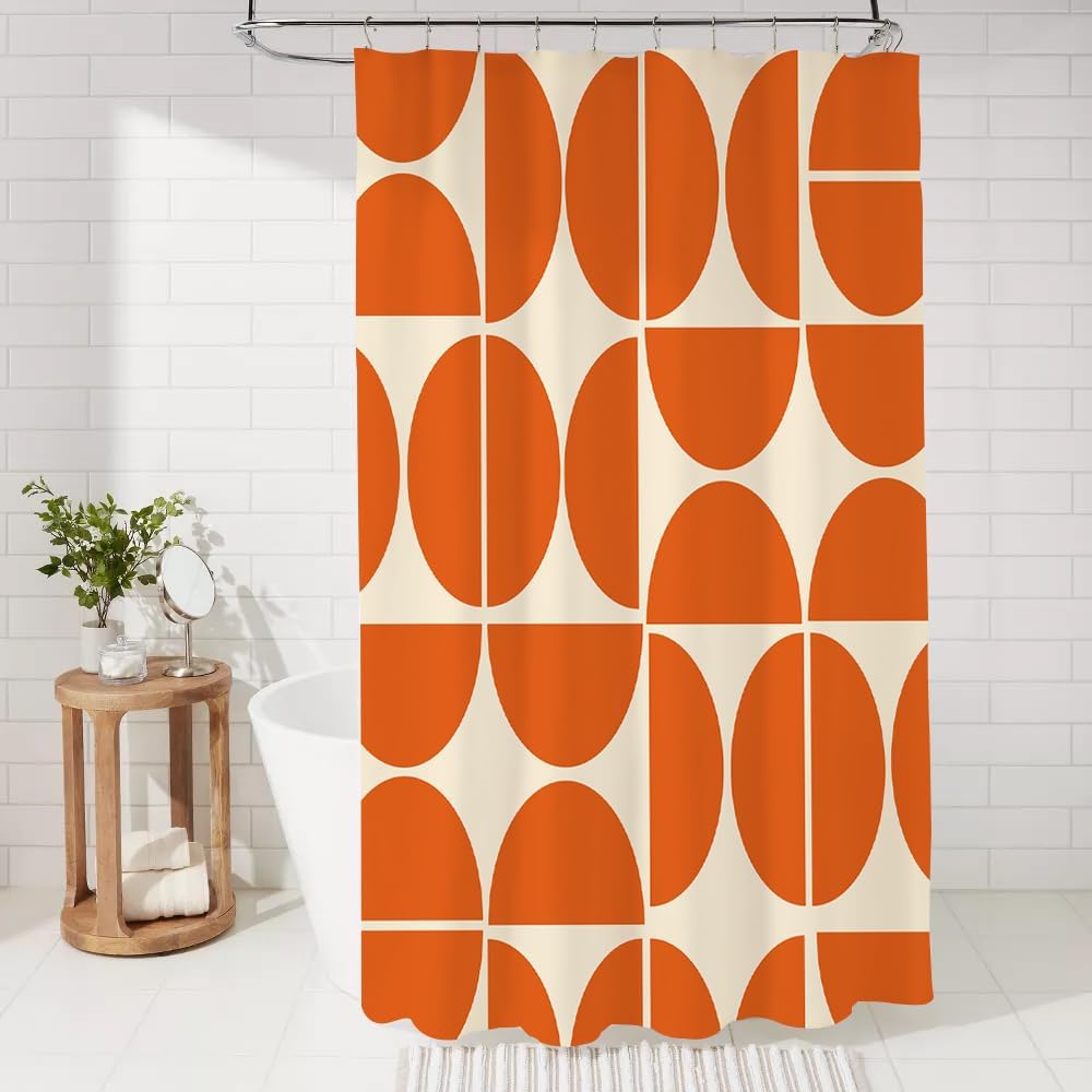 Enter a new world by having the mid century geometric shower curtain style. Can be at the art of modern, when saw the mid century and abstract morden shower curtain for bathroom. If you are a fan of mid century style or have a hobby of any abstract morden syle, you will be spending time with it in your own personal space. Designed to fit standardized bath tubs, A quick and luxurious way to refresh and change the appearance of a bathroom, bedroom, restroom, master bathroom, kids bathroom, dorm room, hotel bath. Dimensions: 72 inch (Wide) X 72 inch (Long) Package: 1Pc Shower Curtain + 12Pcs Plastic Hooks You will enjoy your bath time with these creative and unique shower curtain!