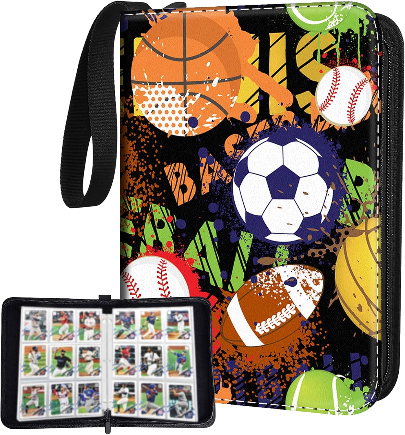 Note:Cards are not included in this product. 【Large Capacity】Our ball card binder is 4-pocket card binder with 60-page sleeve can hold 480 cards. Store and display your cards in this trading card binder to keep them organized; The sturdy 3 metal D-rings inside the card storage bag securely hold 60 removable 4-pocket sheets that can be easily added or removed when necessary