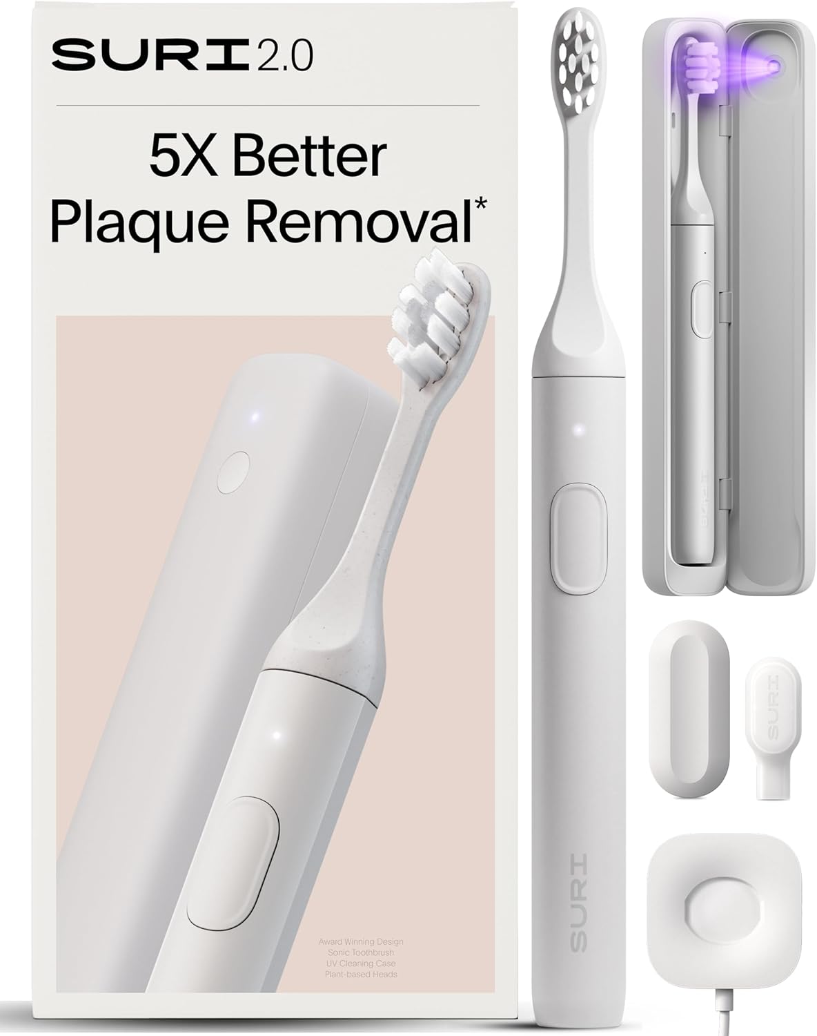 An icon. Redefined. SURI 2.0 is our most advanced toothbrush yet—more powerful, more intuitive, and more effortless than ever. A new high-amplitude motor delivers a deeper yet gentle clean. The built-in pressure sensor lets you brush with confidence. And now with wireless charging and a redesigned travel case that powers UV cleaning on the go, SURI 2.0 fits seamlessly into your life, wherever it takes you.Innovation with purpose—the highest-rated, award-winning toothbrush—now even better.Main key features:—Touchsense™ Pressure Sensor (for better brushing technique)—High amplitude motor (for effective plaque removal & gentler on gums)—Upgraded accessories (for even more effortless travelling)—Travel mode + brush head cover (for a super compact travel footprint)—Streamlined packaging (for all-round less impact)—Wireless induction charging (for smarter countertop appeal)—Everything you loved before (plant-based heads, sleek aluminium body, great battery)