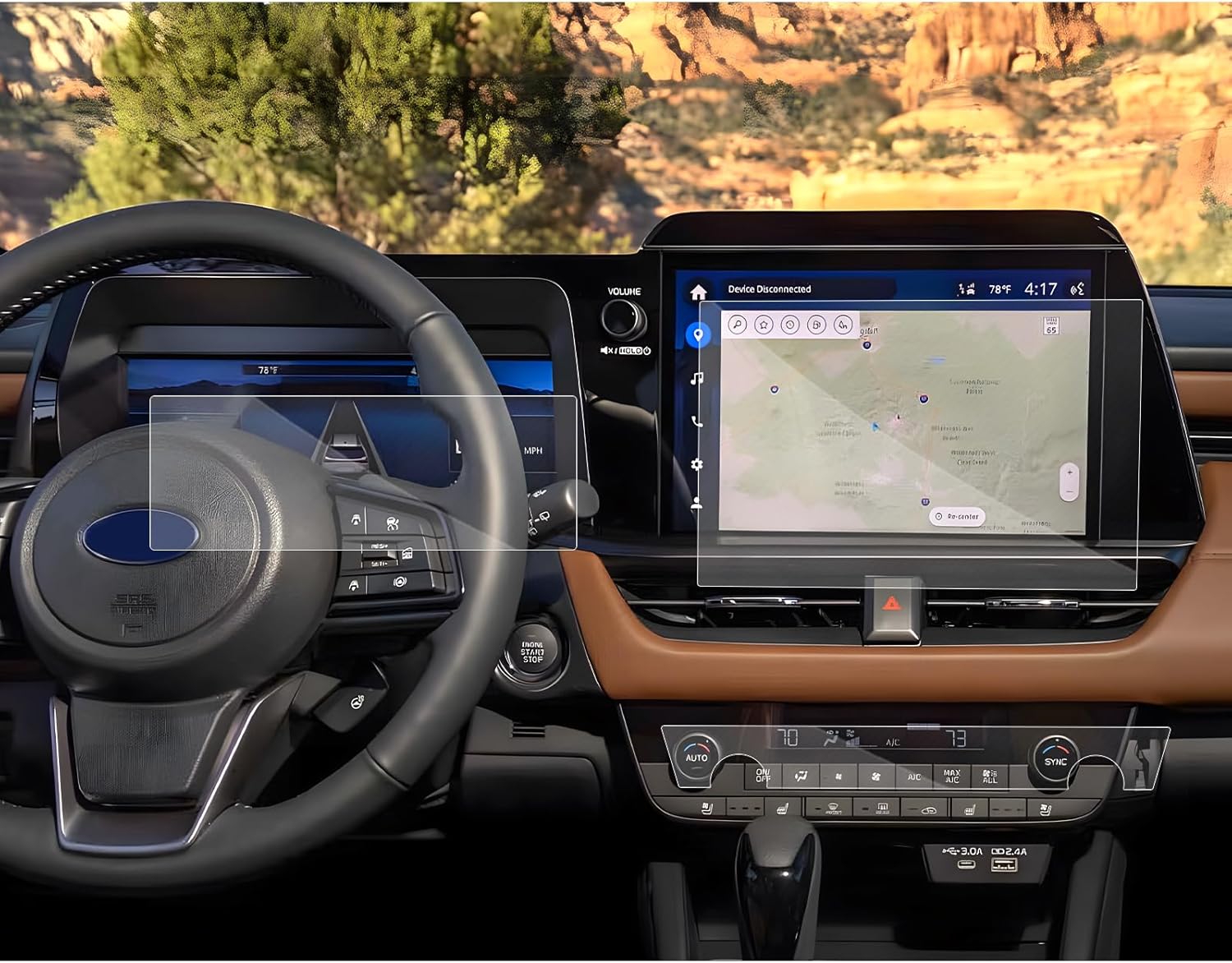 SXCY 2PCS Screen Protector for 2026 Subaru Outback Accessories [GPS 12.1 Inch + Dash 12.3 Inch] for 2026 Subaru Outback Accessories (Premium, Limited, Limited XT, Touring, Touring XT, Wilderness) Screen Protector , Tempered Glass Screen Protector 2026 Outback Touch Screen Protector 2026 Outback Navigation Display Touch Screen ProtectorCompatible With: 2026 Subaru Outback Accessories Screen ProtectorMaterial: 9H Hardness HD Tempered Glass FilmPackage includes:1 x SXCY 2026 Outback Tempered Glass Screen Protector, installation Instruction, installation tool kitsFeatures:✔ The 2026 Outback Screen Protector was laser cutting, used the advanced materials and great craft, fits your screen perfectly✔ 0.125mm Ultra-thin layer, helps the 2026 Outback screen feel smoother, more touch sensitive, higher screen clarity, and prevents the 2026 Outback screen from absorbing dust, daily wear and scratches✔ The oleophobic electronic coating can help screen reduce oil and easier to clean, when it comes to a screen dirt by coffee or drinks, then you can wipe lightly on our 2026 Outback 14 Inch screen protector layer, with SXCY screen savers' help, clean your screen will more easilyInstallation Steps of Tempered Glass Film:① Clean the screen thoroughly with the provided microfiber cloth.② Peel off the protective layer from the adhesive side of the screen protector.③ Use our location stickers align the screen protector with the screen, making sure all cutouts are properly positioned.④ Gently press the center of the screen protector. The adhesive will spread across the screen smoothly.⑤ If any bubbles remain, use a card wrapped in a soft cloth to push them towards the edges.