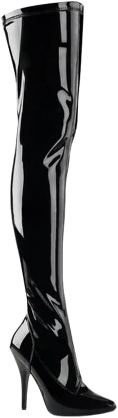 Upper Material: PULining Material: Faux LeatherInsole Material: PUPopular Boot Style: Fashion BootsProduct Category: Fashion BootsApplicable Age Group: AdultsSole Material: PUApplicable Gender: FemaleStyle: SexyToe Shape: Pointed ToeHeel Shape: Stiletto HeelHeel Height: 4.72inShape: Over-the-KneeWearing Method: Side Zipper