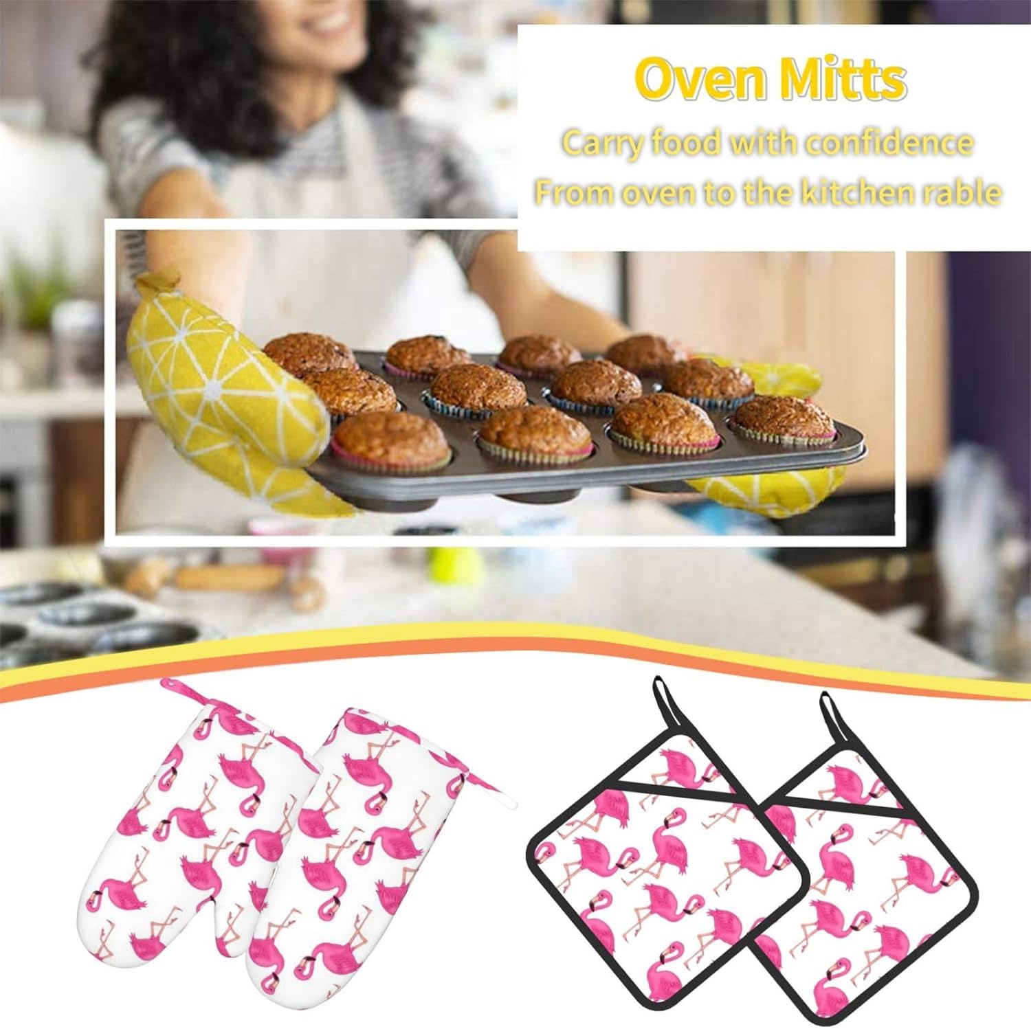 Upgrade your kitchen essentials with this oven mitts and pot holders set, designed for safe and comfortable handling of hot cookware. The set includes 2 heat-resistant oven mitts and 2 pot holders with pockets, making it a practical choice for daily cooking, baking, grilling, and microwave use.Crafted from high-quality polyester with thick insulated padding, these kitchen gloves deliver reliable heat protection up to 260°C. The soft quilted lining ensures comfort and flexibility, while the silicone palm design enhances grip and control when handling hot pots, pans, and trays.The non-slip silicone surface provides added stability, giving you confidence when moving hot cookware. Waterproof inner and outer layers make cleaning simple—just wipe clean or hand wash and air dry for easy care.Each piece features a convenient hanging loop for organized storage and quick access in your kitchen. Stylish and functional, this oven mitts set also makes a thoughtful gift for family and friends on holidays, housewarmings, and special occasions.