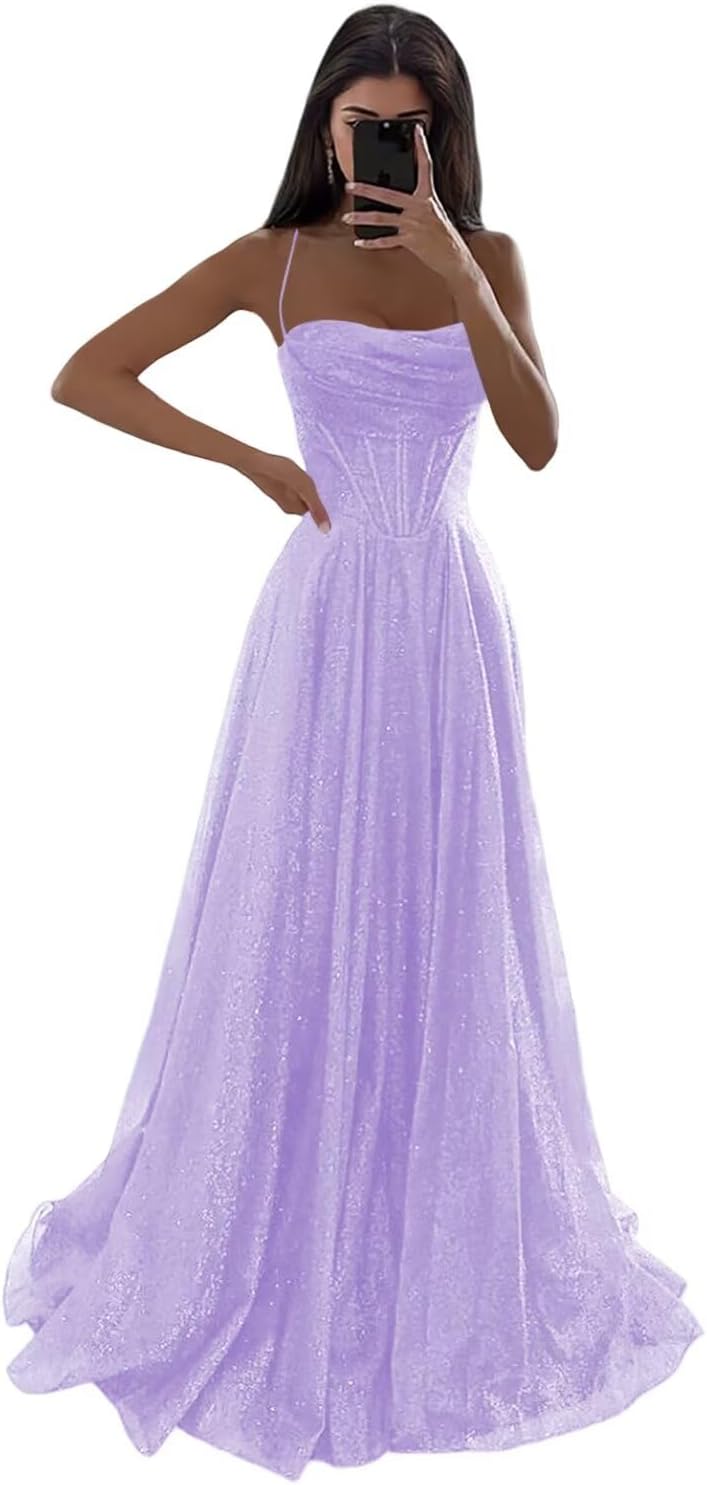 | Embellishment Feature | Corset, Cowl Neck, Glitter Tulle, Spaghetti Straps, with Slit |