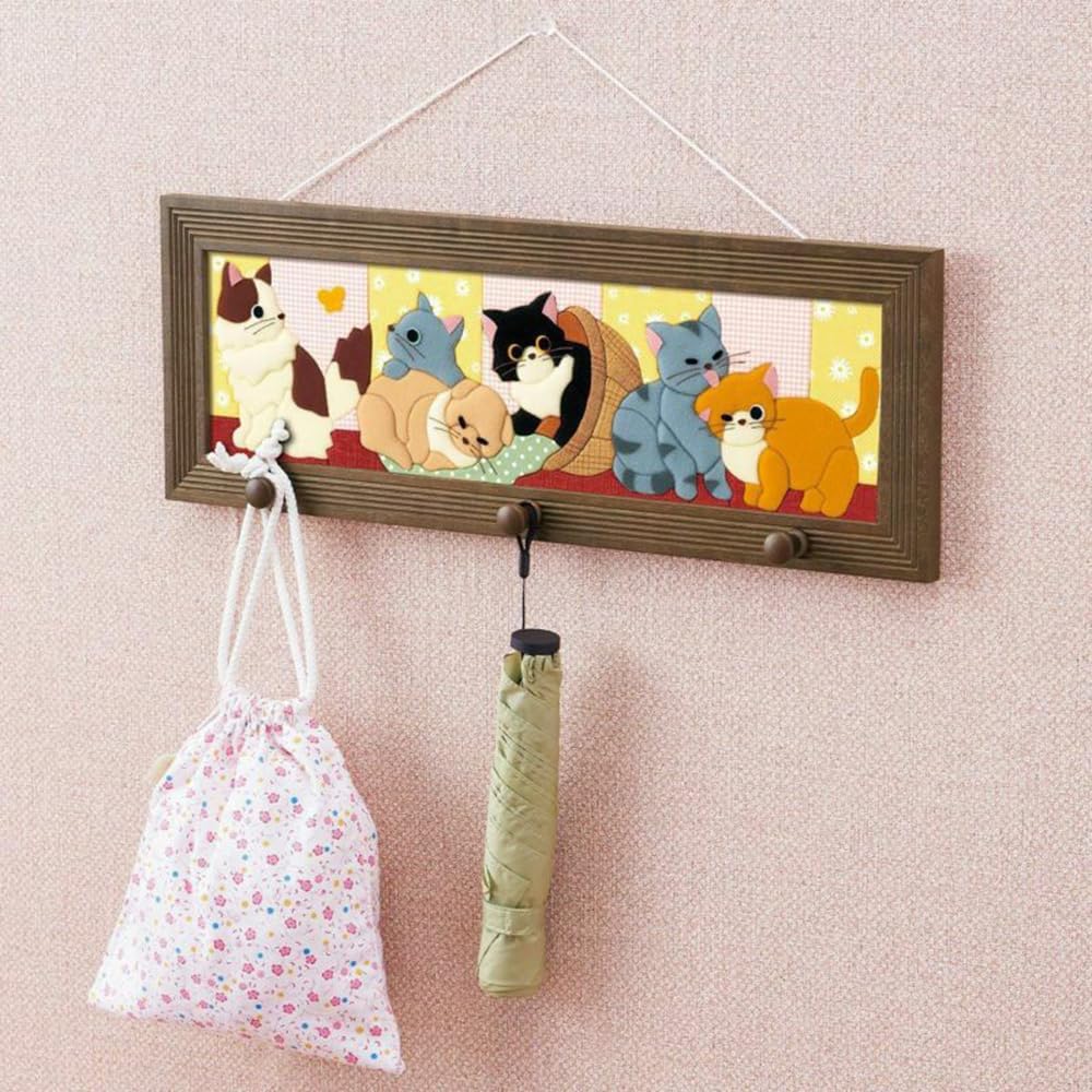 From the left, we have collected popular breeds among ragdoll, Russian blue, Scottish fold, Minuette, American short hair, manchikan and cats. [Uses] Kimekomi Patchwork Craft Kit Features: Decorate your room with cute cat patterns full of facial expressions, and you can feel the moment of healing. A cute finish is made with fluffy cotton fabric to give off a feeling of cat's fur. Production Method: Apply a thin bond to the entire back of the kimekomi board and adhere to the backing paper. Perforates all the saws of your kimekumi board Apply the pattern sticker to the specified fabric and cut with a solid line. Remove the stencil sticker from the cloth and seal the cloth into the designated treadboard. Insert the felt core in the designated area and tighten the cloth. Attach the parts when all done building is complete