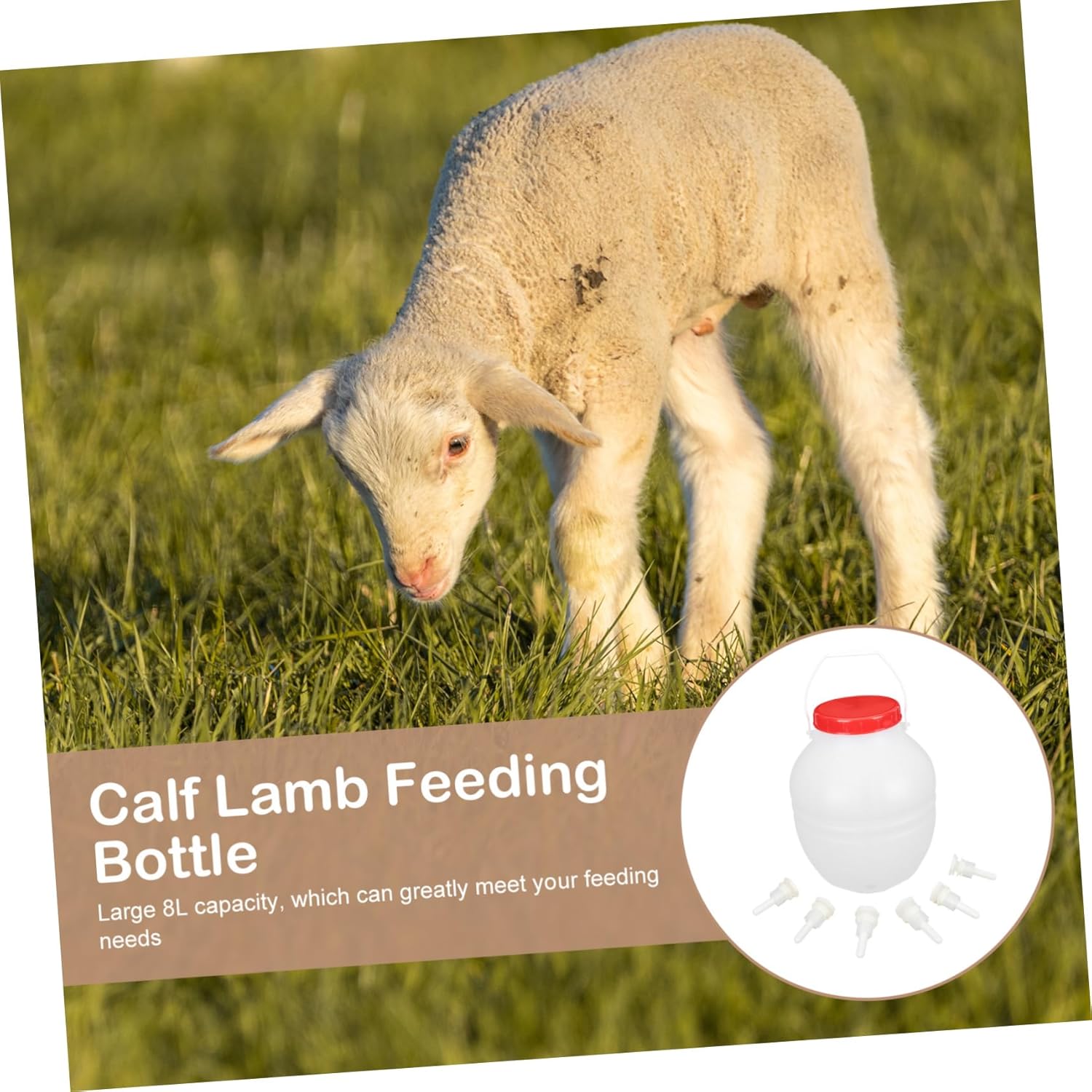 Package List 1 x Lamb Milk Feeder 6 x nipples Characteristics - Capacity: 8L Lamb Feeder. - Material: Plastic + soft silicone Young Poultry Nursing Bottle. - Color: Assorted Color Feeding Bottles. - Size: About 32.00X23.00X23.00cm/12.58X9.04X9.04in Calf Lamb Feeding Bottle. - Specially designed for feeding orphaned lambs. It is also suitable for feeding pup, foal and other Lamb Feeding Bottle. - Six milk feeding positions can feed 6 small animals at the same time Calf Nursing Bottles. - Multi-purpose milk bottle, can feed calf lamb sheep goat cattle, etc Lamb Milk Bottle. - Thickening handle, humanized design, healthy and no harm to etc Sheep Milk Bottle. - Save much time and energy when feeding, sturdy and durable Lamb Feeder Bottle.Goods InformationFeeding Bottles 8L capacity design, which will meet your needs.Sheep Milk Bottle material for accidental leak.Calf Lamb Feeding Bottle Handle structure, easy to hold and use.Livestock Nurser Bottles This item is manufactured with top-class material for durable and long-lasting use.Lamb Feeding Bottle Smooth surface, convenient to clean